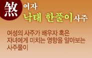 ¿©ÀÚ°¡ À̼º Áï ³²ÀÚÀÇ »çÁÖ¿Í ¸¸³ª º¯È­¸¦ ¸Â°Ô µÇ´Â ¿î¼¼Ç®ÀÌ·Î ¿©ÀÚ»çÁÖÀÇ Àδö, ³²Æíº¹, À̼º¿î, ¾ÖÁ¤¿îµîÀÇ ¿î¼¼¿¡ µû¶ó º¯È­¸¦ °®´Â »çÁÖÆÈÀÚ ¿î¼¼º¸±â